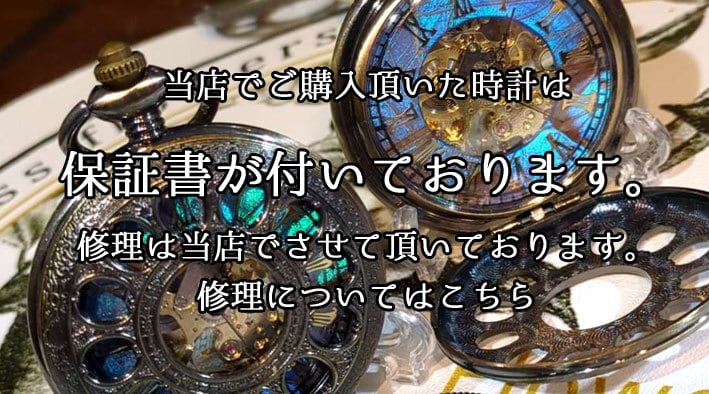 ★★ご注意★★ こちらの作品はご注文後に制作いたしますので発送まで1ヶ月ほどお時間を頂きます ★★ご注意★★ ★説明★ こちらはTikTokで人気のモデルとなります。 本物のモルフォ蝶の翅を文字盤にあしらった重厚な手巻き式懐中時計です。 手巻き式は定期的にゼンマイを巻く必要がありますが、電池切れの心配がありません。 裏面がバックスケルトンでムーブメントの動きが楽しめます。 時刻精度はクォーツに劣りますのでファッションウォッチとしてお楽しみください。 時計は1ヶ月保証書が付きます。 購入後のアフターケアもお気軽にご相談くださいませ。 ▼仕様 駆動:手巻き機械式 文字盤直径:約4.3cm(リューズ含まない) 厚み :1.8cm(カバー閉) 重さ :50.0g ポケット用チェーンの長さ:37cm ▼ご注意事項(ぜんまいの巻き方について) ・ゼンマイ式を完全にきつく巻き上げてしまうと、動かなくなったり時刻精度が著しく落ちる故障の原因となります。 ゼンマイは8割~9割ぐらい巻いてご利用くださいませ。m(__)m ▼モルフォ蝶について 当店では本物の蝶の翅を使用しております。 生きているモルフォ蝶は大変希少な為ワシントン条約で守られております。 こちらで扱っているモルフォ蝶の翅は、基本的に何度も人の手に渡り破損して破棄となる物や、胴体が潰れてしまったり標本としての価値が無くなってしまった物等を使用しております。 スレや破れ欠けなど、個性と思って頂ける方に購入をオススメします。 ▼その他の注意事項 1品1品手作りで作成しております。 時計そのものにも個体差があります。 完品をお求めの方は購入をお控えください。m(__)m