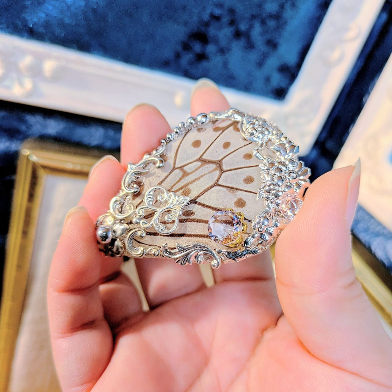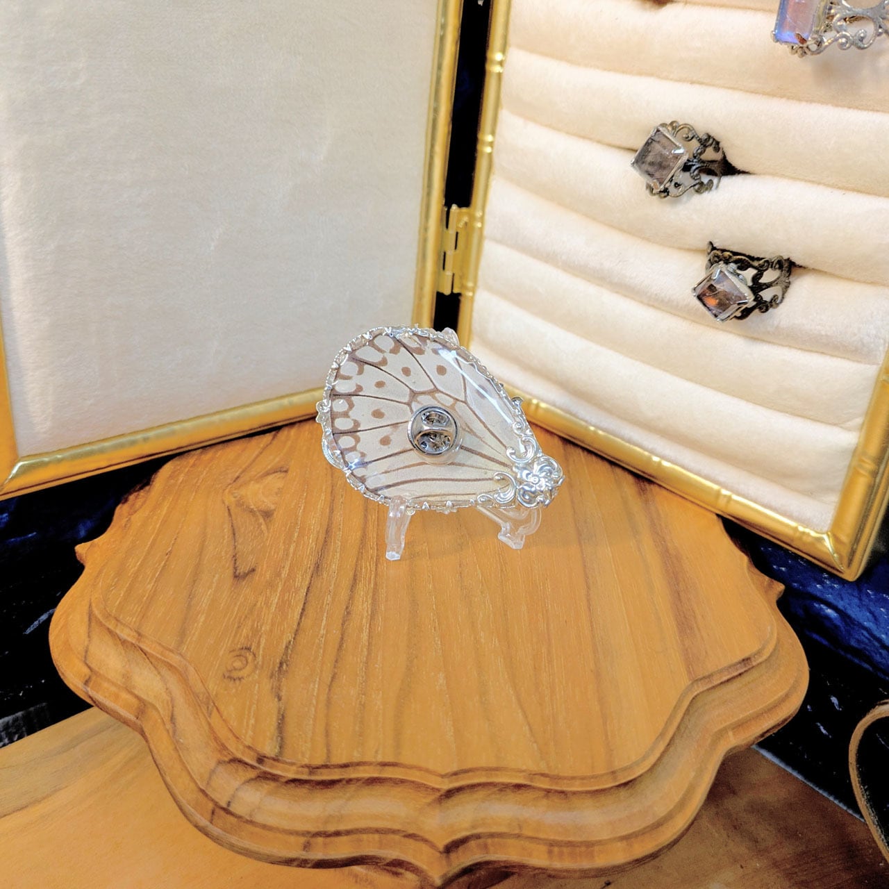 木箱入り壁掛けピンブローチ:オオゴマダラ