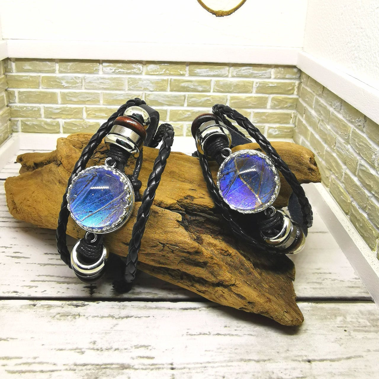 モルフォ蝶の翅をあしらったメンズ用ブレスレット